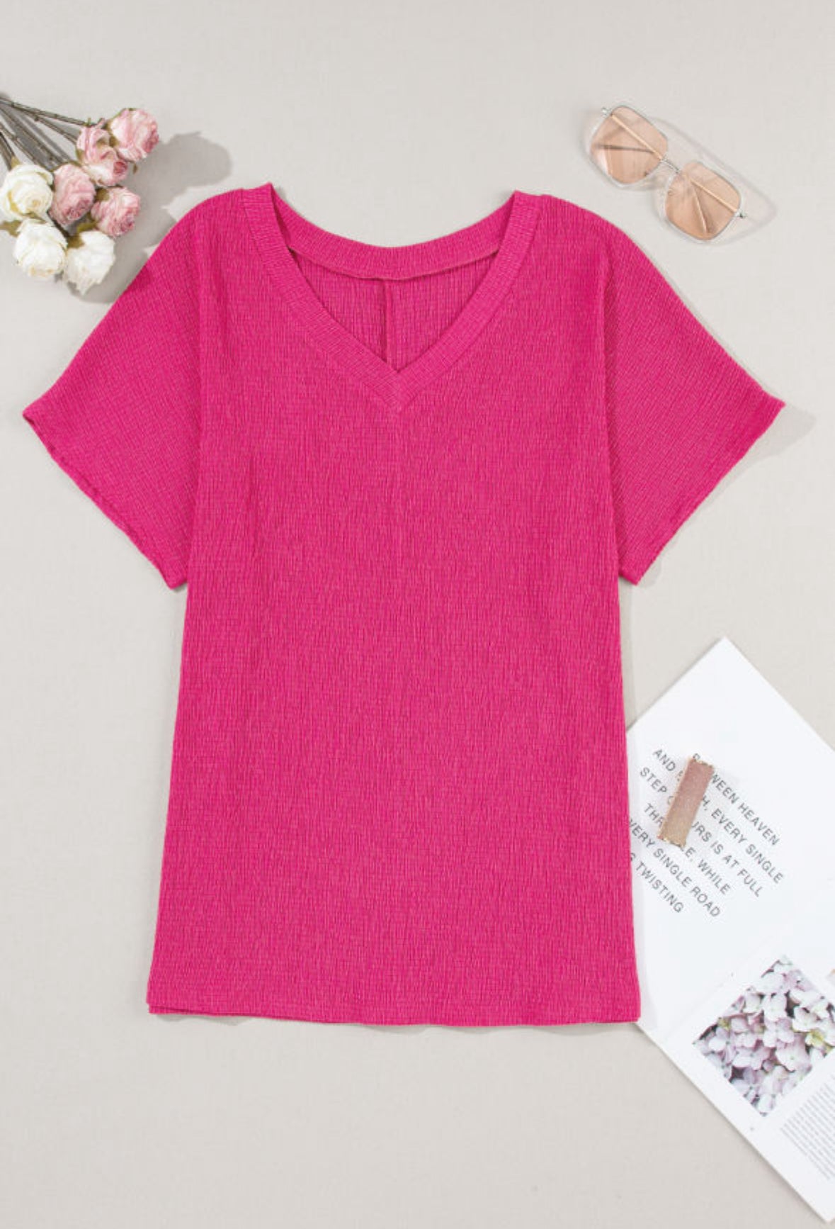 V-neck, short sleeves, and breathable fabric make this blouse suitable for summer