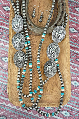 HORSE MOUNTAIN TRI-COLOR & SILVER PEARL NECKLACE AND EARRING SET