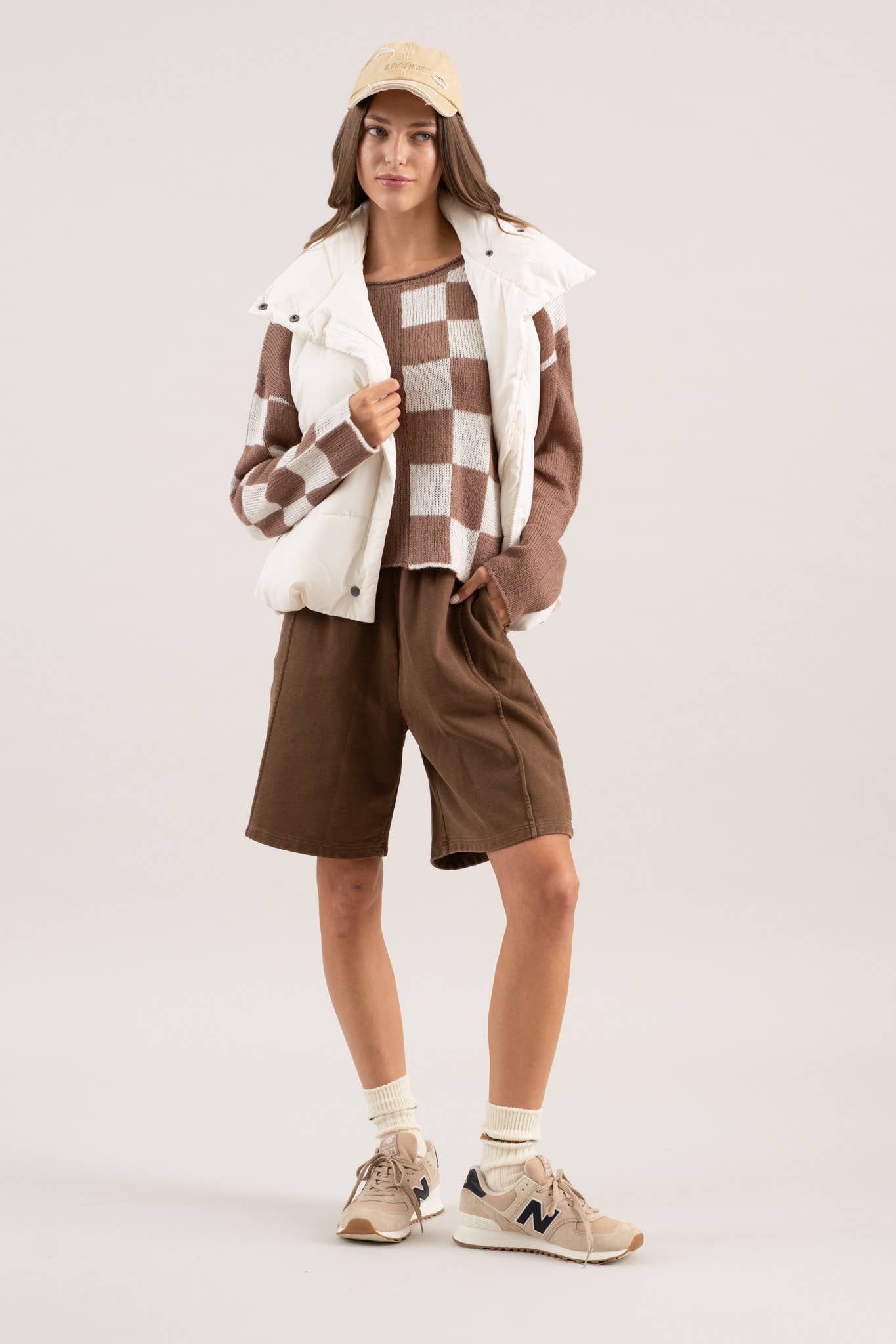 RELAXED FIT COLORBLOCK CHECKERED KNIT PULLOVER SWEATER