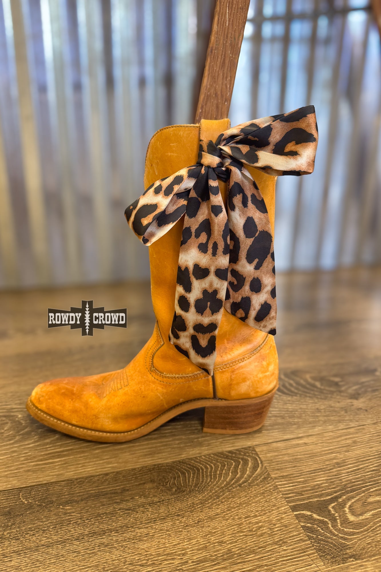 The Wild Valley Twillie is the perfect pop of punchy western flair. This silky, narrow scarf features a bold desert-toned leopard print that ties beautifully around your neck, hat, wrist, or even your favorite bag. Its lightweight feel makes it an easy everyday accessory, adding just the right mix of wild and chic to any outfit.